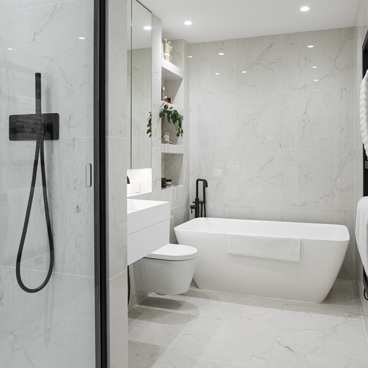 Sanctuary Bathrooms was enlisted to help supply new bathroom products to a family living in a four-bedroom, four-bathroom property in a gated community in Battersea, southwest London. This was undertaken in partnership with London-based luxury Interior Architecture and Design Studio, misch_MISCH studio, who had been tasked in helping to carry out comprehensive renovation, curating spaces that blend classic features with modern living, contemporary layouts, and an elegant yet warm minimalist aesthetic, while incorporating the client’s preference for a black and white colour contrast.