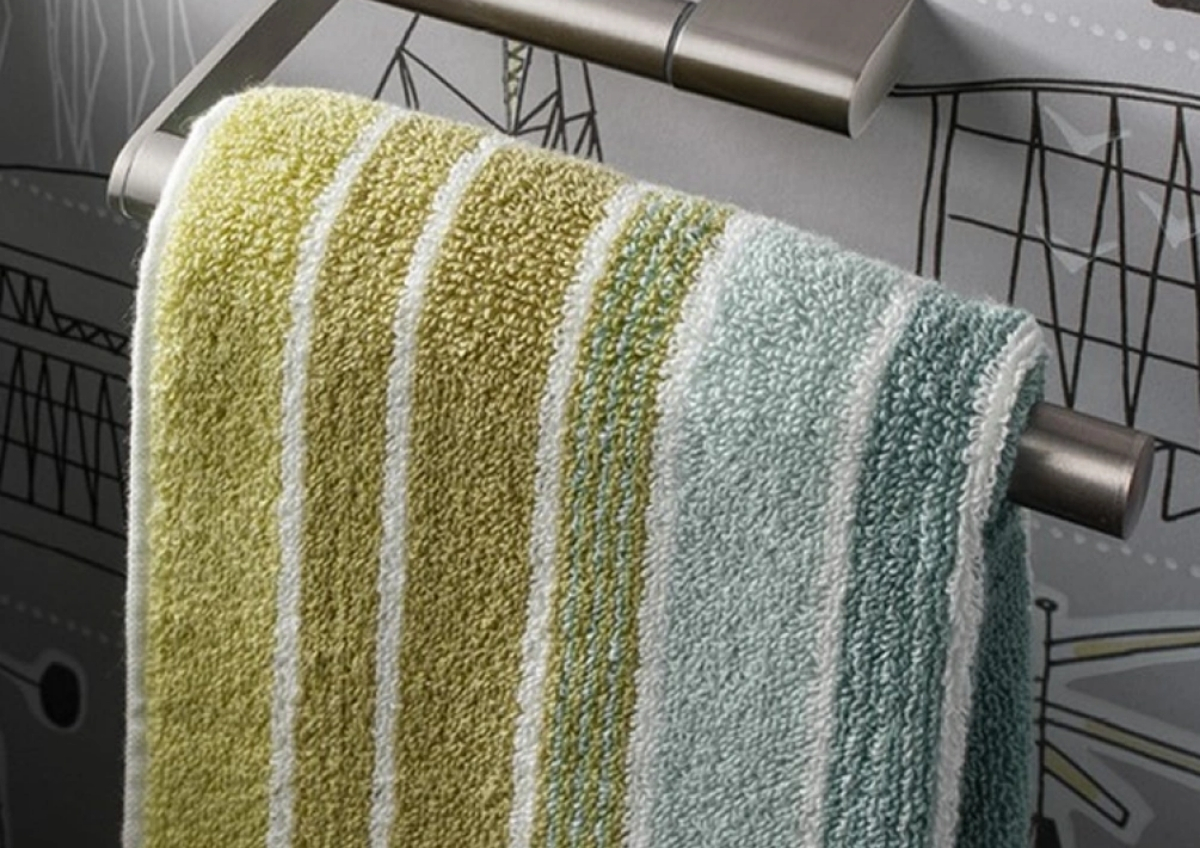If the bathroom is fairly mundane or minimalist in colour, then a way to add colour is to look at patterned and brightly-coloured towels and bath mats. This can quickly add a decorative touch while hanging in a space that contrasts nicely with the all-white or magnolia space.