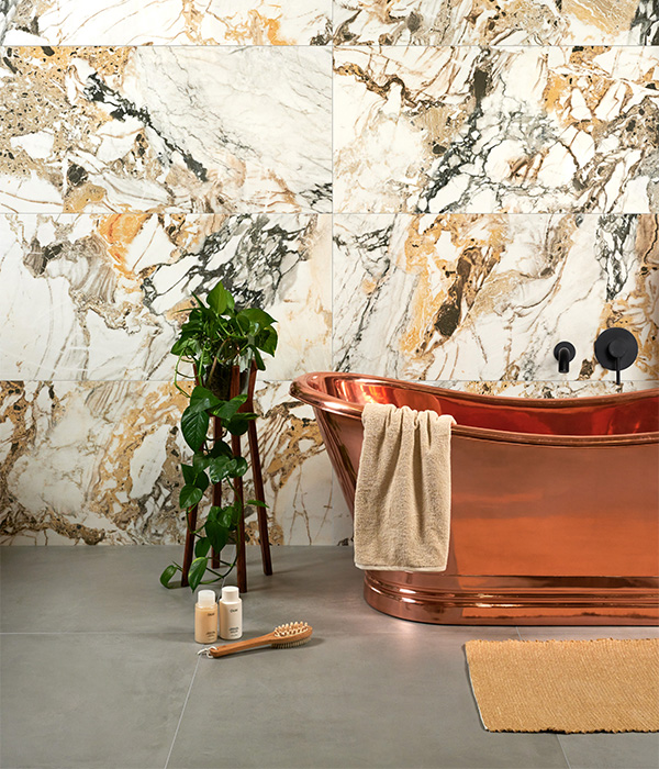 Perhaps the most popular alternative shade of gold is rose gold, which has been adopted by phone and computer manufacturers and is starting to appear more frequently as a finish on selected brands of brassware. More metallic in its colouring than yellow gold, it is best suited to neutral shades such as grey, off-white with green or off-white with wood tones.