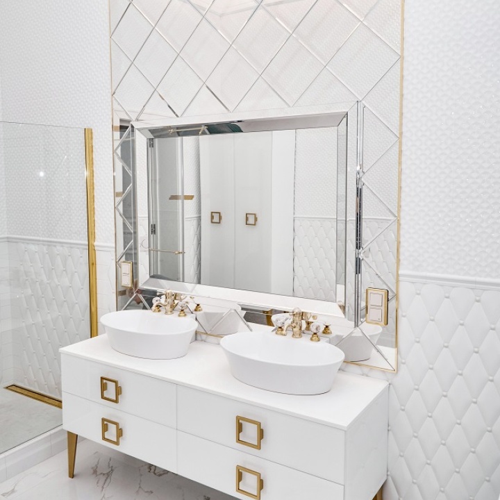 White and Gold Bathroom Tiles, Walls and Surfaces