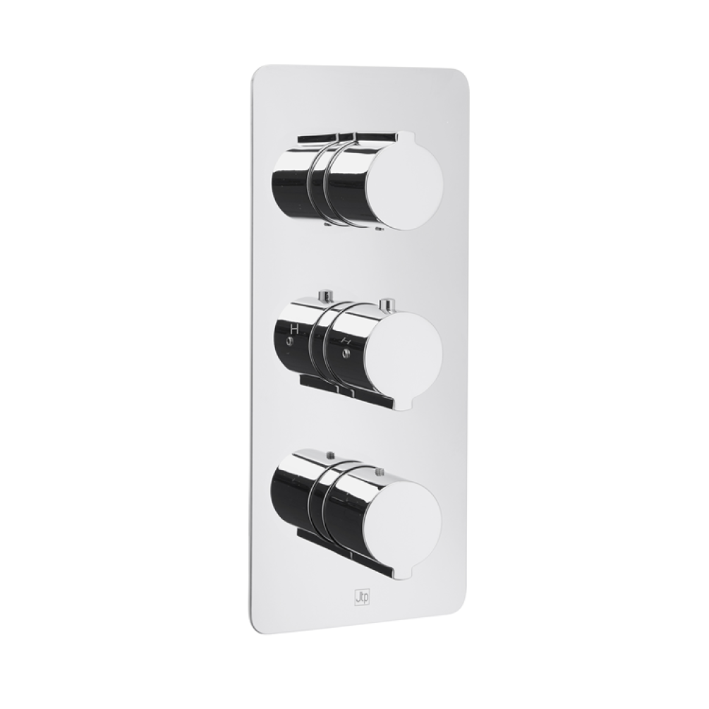 This concealed valve features a portrait design with two outlets and three, rounded, practical controls that will operate two shower accessories, making this an invaluable addition to any modern shower space.