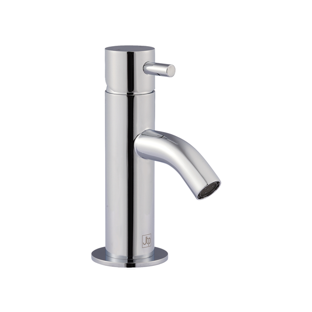 This compact basin mixer features a stylish design with a chrome finish and a practical lever handle that will suit any smaller cloakroom or en-suite bathroom.