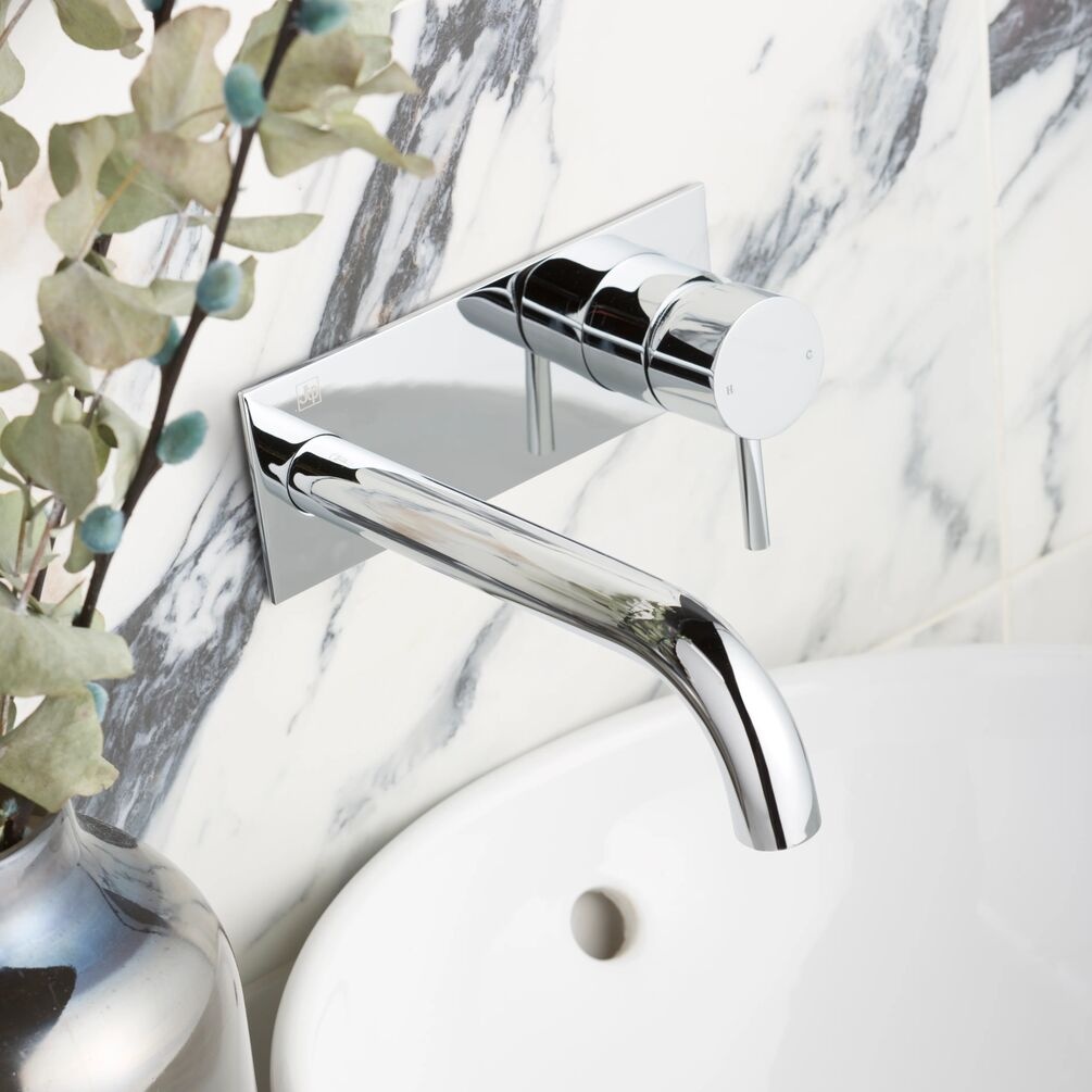 This wall mounted basin mixer features a versatile Chrome finish with a choice of spout, alongside simple lever controls, ensuring that this will suit any contemporary bathroom space.