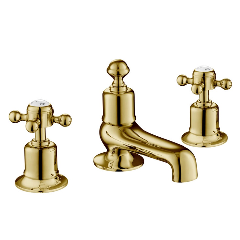 Elegantly fill your bath with the JTP Grosvenor Cross Polished Gold 3 Tap Hole Deck Mounted Bath Filler, featuring a stunning, traditional design with crosshead handles and a timeless polished gold finish. The perfect choice for the period styled bathroom.