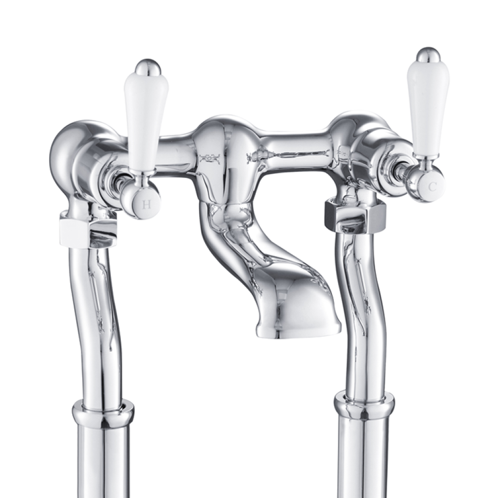 This stylish bath filler features a floorstanding design with a chrome finish and a choice of black or white lever handles that will make an elegant statement in any traditional bathroom.