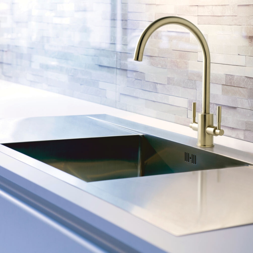 This refined JTP Newbury Brushed Brass Kitchen Sink Mixer blends reliable functionality with a sleek, modern aesthetic, making it an ideal addition to contemporary kitchens.