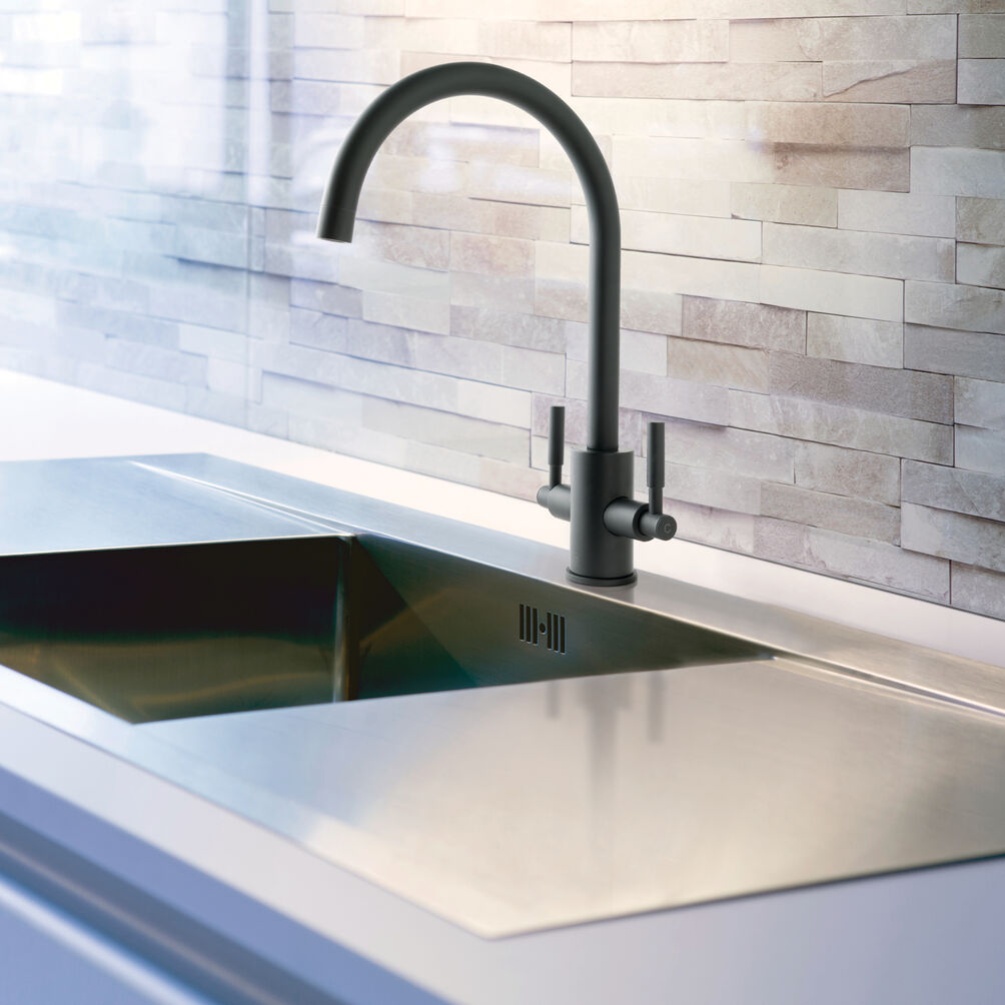 This sophisticated JTP Newbury Matt Black Kitchen Sink Mixer combines practical performance with contemporary design for your kitchen.