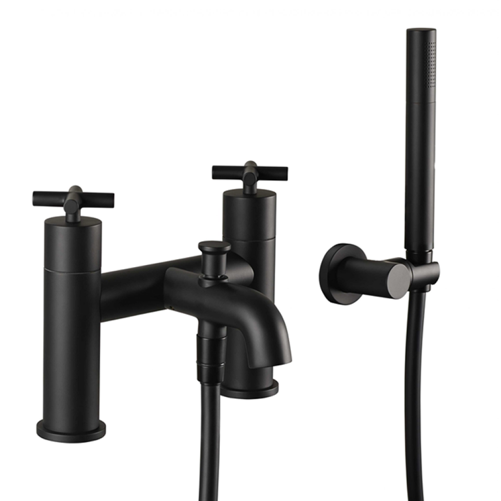 This practical bath shower mixer features a simple design with a striking Matt Black finish, unique crosshead handles and a single function shower kit, making this a versatile addition to any modern bathroom.