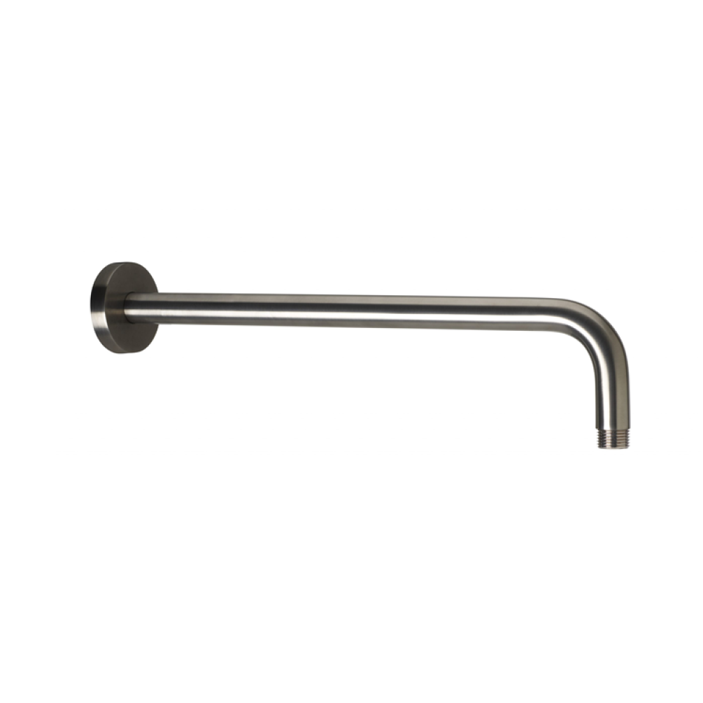 Measuring 70mm in height and 400mm in depth, the cylindrical frame of this wall mounted shower arm bends downwards at its open end, such that it can accommodate round shower head and provide an immersive rainfall shower experience to anyone stood below.