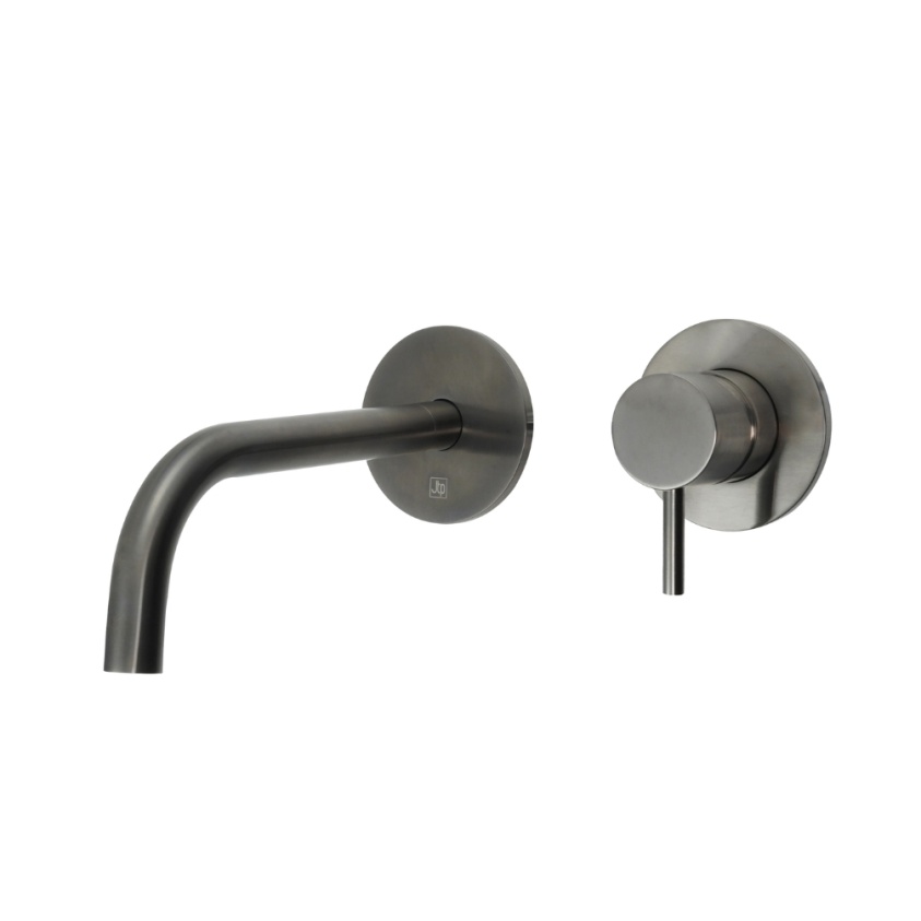 With three spout projections to choose from, the Vos Brushed Black Wall Mounted Slim Basin Mixer is an elegant item of brassware from the JTP collection that would streamline the function of any modern bathroom, while casting a striking silhouette above its basin area.