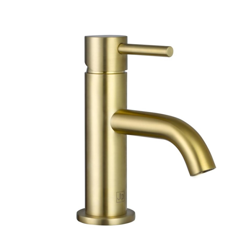Elegantly refined in its sculpture and finish, the Vos Brushed Brass Single Lever Mini Basin Mixer is a charming piece of brassware from the JTP collection that would be the crowning jewel on any modestly sized modern bathroom.