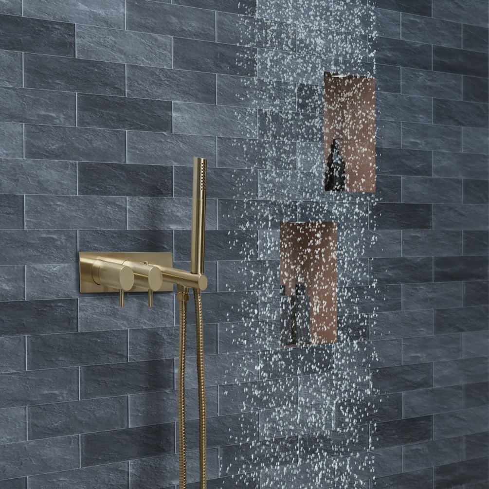 With its integrated handset shower bracket, the Vos Brushed Brass Thermostatic Concealed Valve with Handset is an exemplary piece of brassware from the JTP range that would elevate the function of any shower enclosure, while making a striking addition to your modern bathroom design.