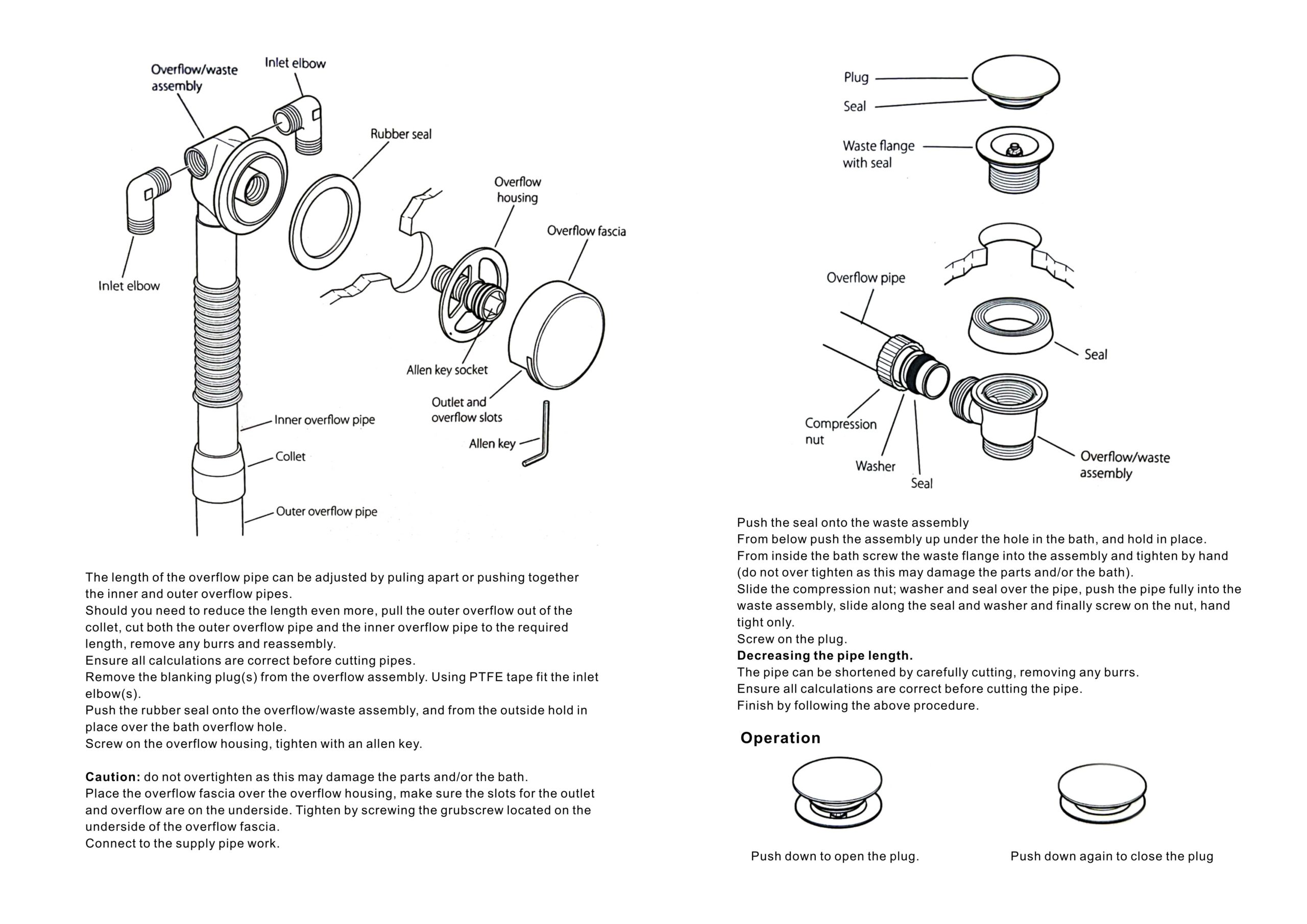 Featuring a simple, round design with a beautiful brushed bronze finish, this model is a great match with any bathtub that's compatible with an overflow filler. The waste section uses a simple push-down mechanism for easy operation, while the filler connects to your bath's overflow for a smart, contemporary look. The filler itself can be paired with your choice of bath tap valves or shower valve in order to operate (sold separately).