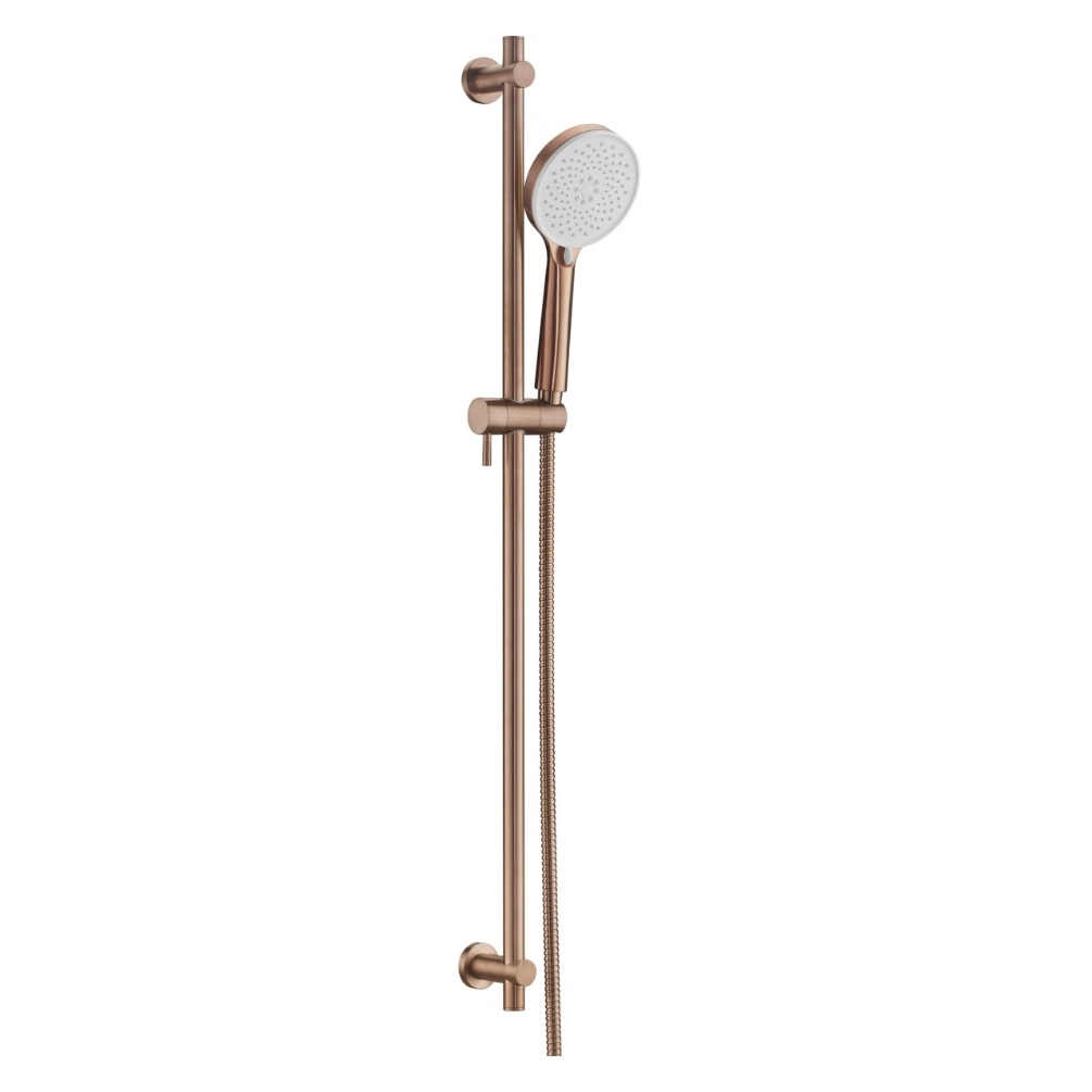 Made from brass and finished in a distinctive brushed bronze coating, this slide rail kit looks stunning when mounted on your shower wall, while its adjustable height ensures comfortable use. Control the water flow with the slim lever handle.