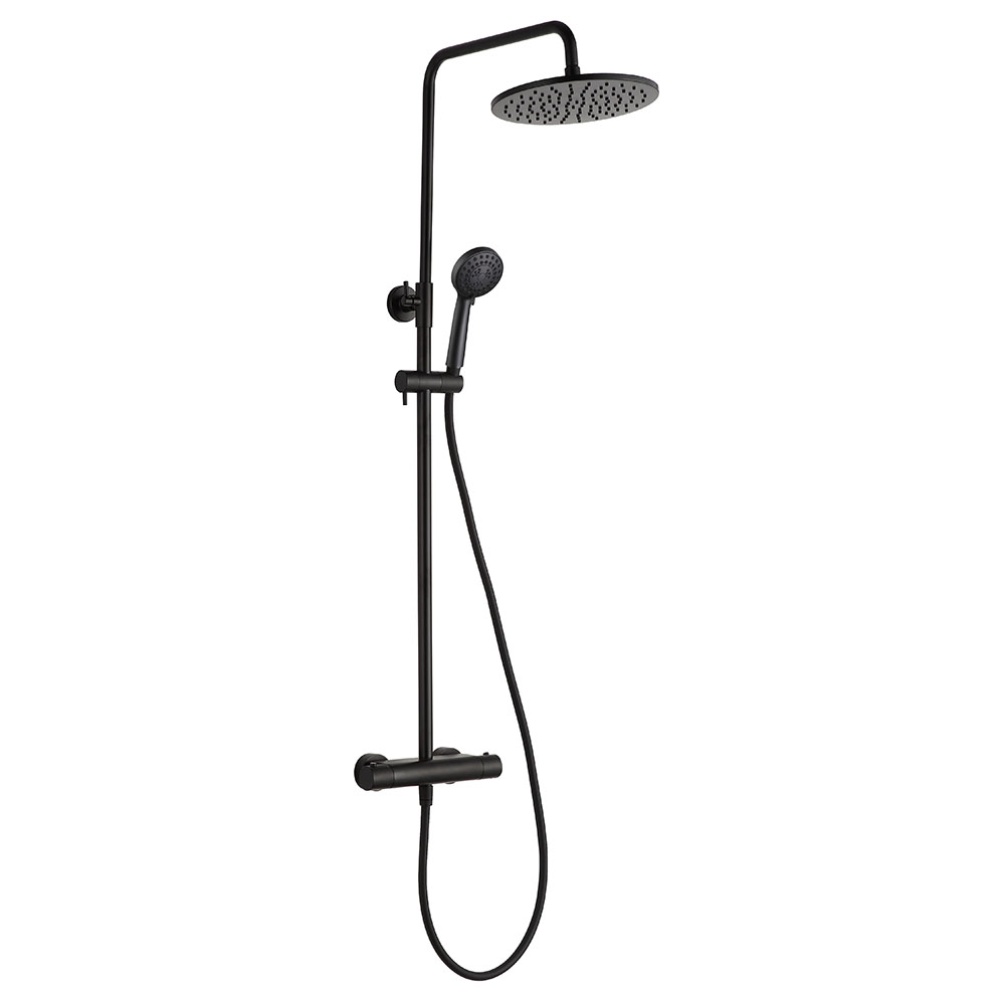 Supplied with a multifunction handset shower, the Vos Matt Black Thermostatic Exposed Bar Valve Shower Kit is an exceptional piece of brassware from the JTP collection that would optimise your showering experience, while consolidating the contemporary aesthetic of any modern bathroom.