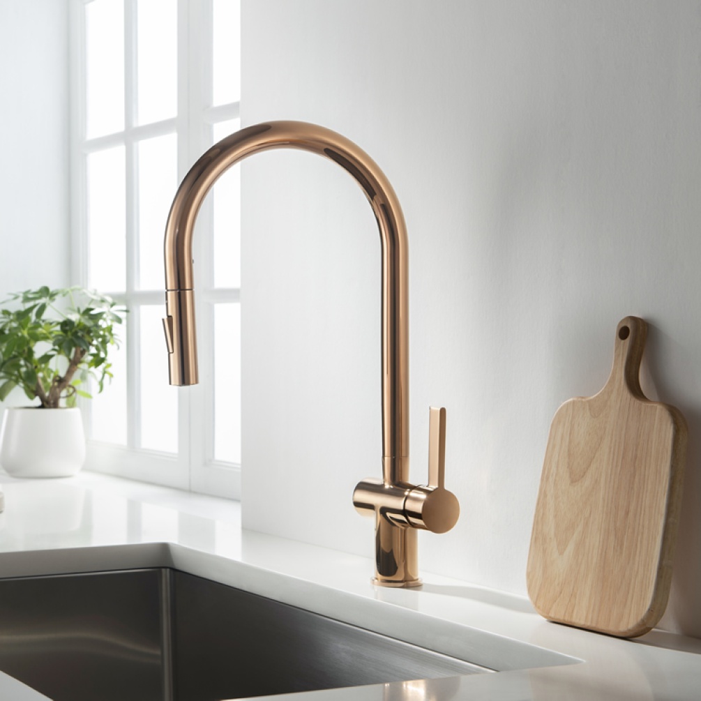 JTP Vos Rose Gold Single Lever Pull Out Kitchen Sink Mixer.
