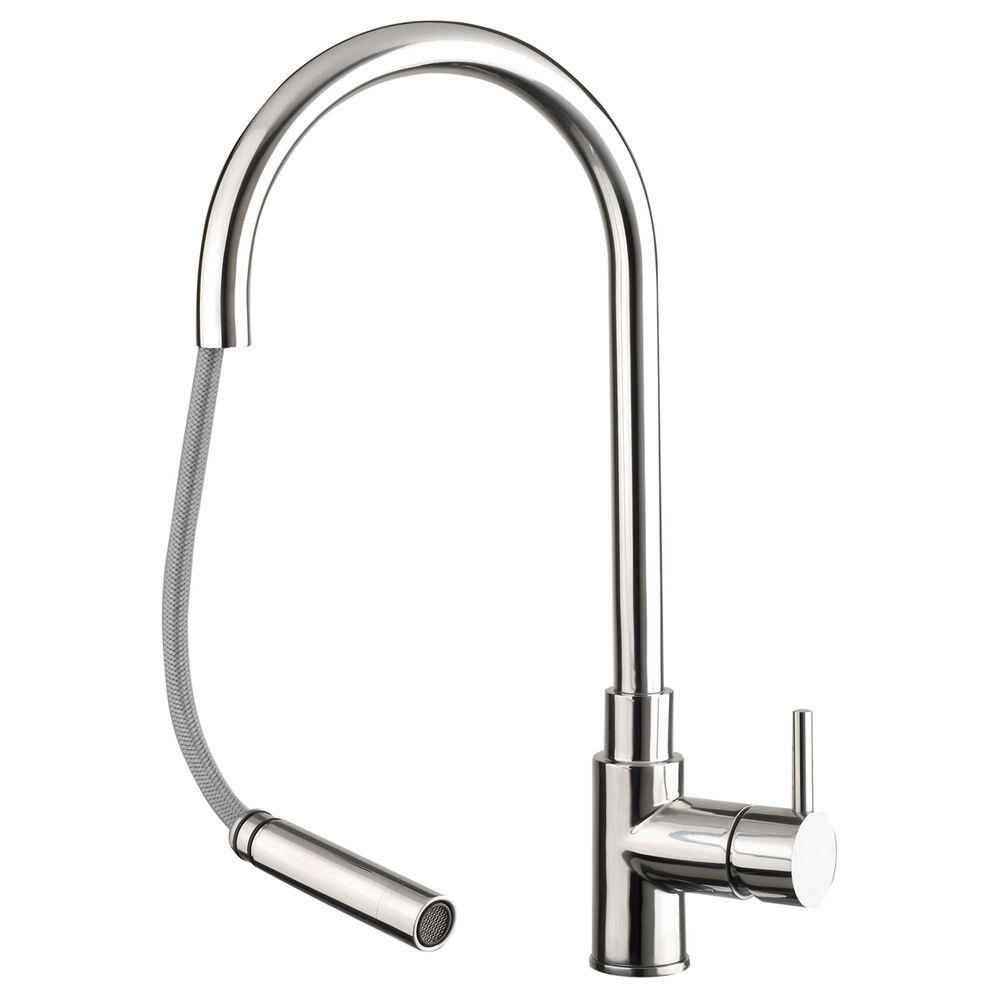 The versatile JTP Zecca Stainless Steel Kitchen Basin Mixer with pull-out swivel spout is a highly practical addition to any contemporary setting.