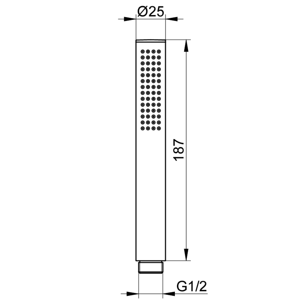 This cylindrical handset shower, which measures 25mm in diameter and 187mm in height, is adorned by numerous rubberised tips surrounding each of its shower nozzles, such that you can simply wipe the handset while the water is running to dislodge and mitigate the accumulation of limescale over time.