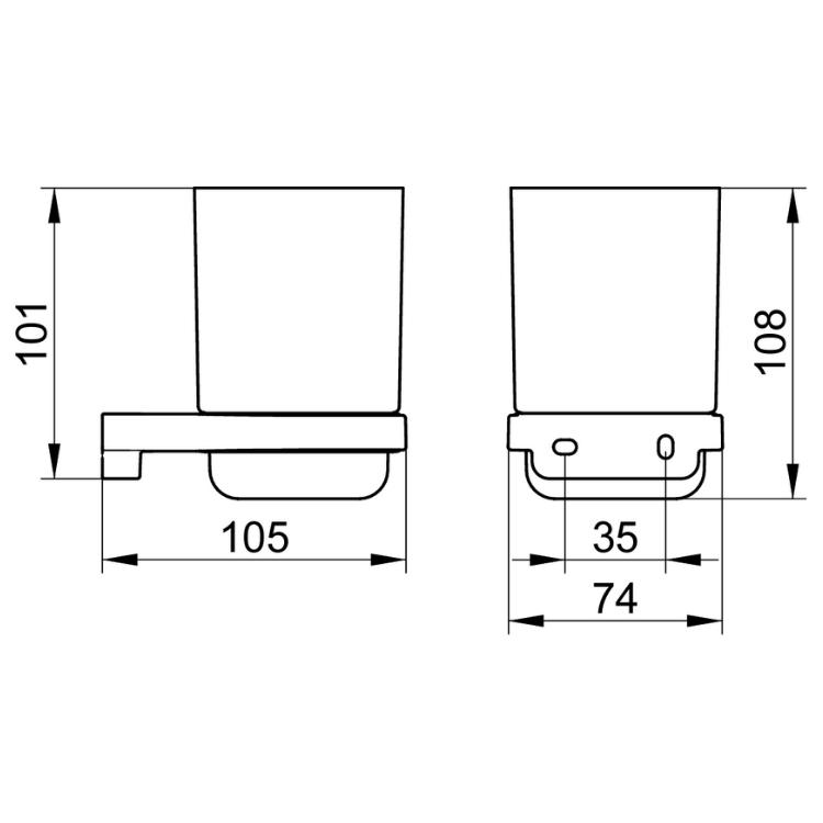 Measuring 74mm in width and extending 105mm from the wall, the curved circumference of the tumbler holder accentuates the sleek design of the crystal glass tumbler, which gives the product its total height of 108mm. The seamless connection of the glass tumbler with the wall mount gives the Collection Moll Tumbler Holder an understated elegance that is sure to provide the perfect accent for your bathroom, whatever its established style.