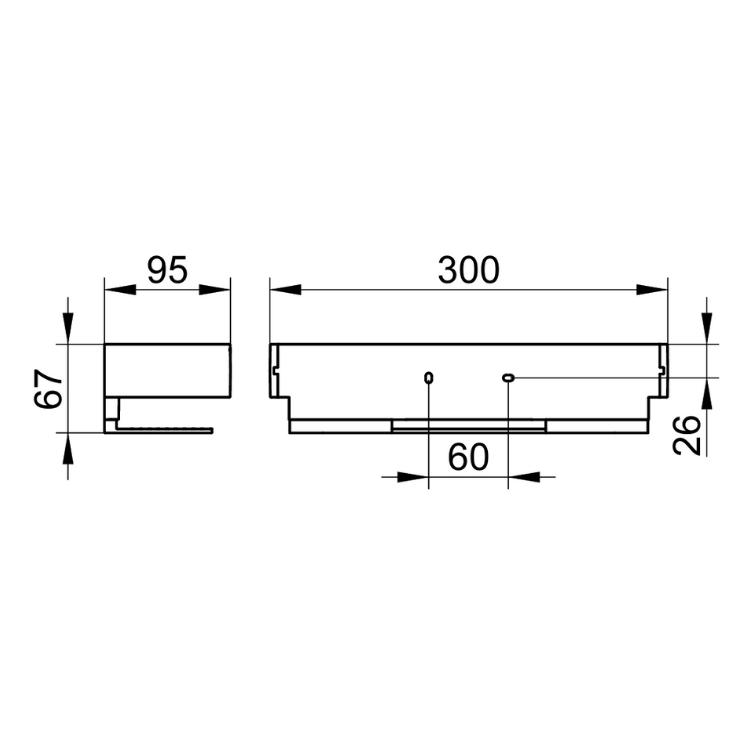 Measuring 300mm in width and only 67mm in height, this compact shower basket is enclosed by a border of silver anodized aluminium to give it a luxuriously glossy look while keeping your bottles and sponges secure. The base of the basket, which extends 95mm from the wall of your shower enclosure, features an exposed shelf to allow any water or suds to run clear of the basket rather than pool at the bottom.