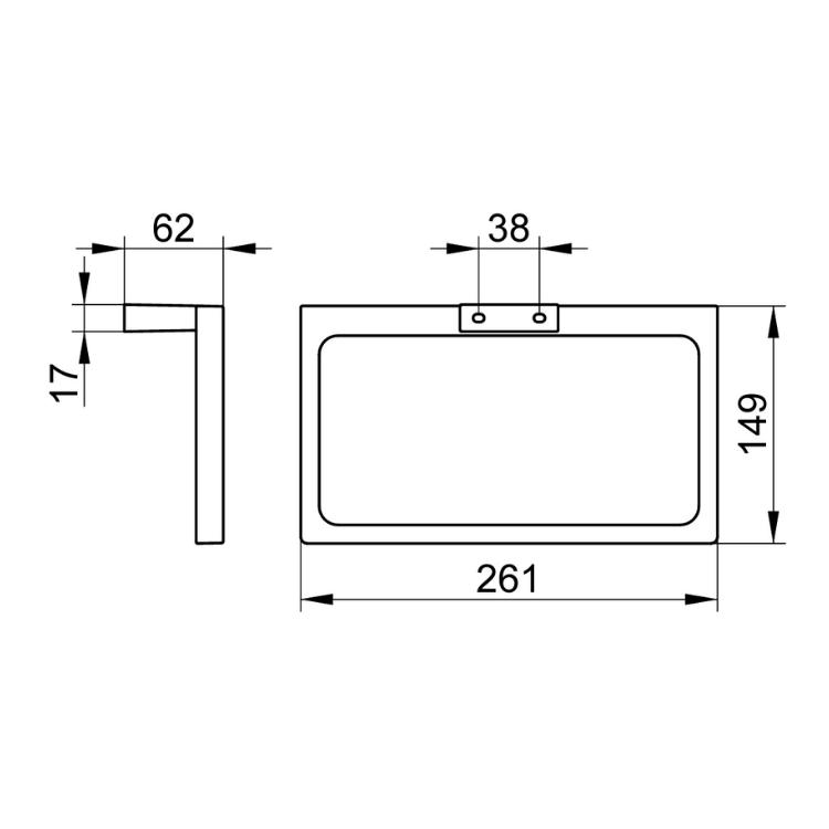 Its clean geometric outline, which measures 261mm in width and 149mm in height, is softened by sloping inward facing curves to ensure that the Edition 11 Towel Ring is as comfortable to the touch as it is alluring to the eye. A rectangular bracket at the top of the towel ring attaches it to the wall, measuring 62mm in depth to provide ample space for towels to be hung and dried.