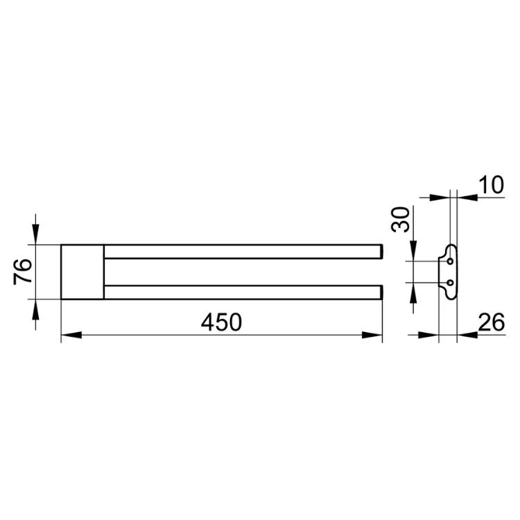 Measuring 76mm in width and protruding 450mm from the wall, the generously sized oval arms of this double towel rail are designed to provide more than enough space for two towels, such that their sculptural beauty is always on the display. Attractive without wanting to demand attention, the Edition 400 Double Arm Towel Holder is intended to complement your contemporary bathroom, fitting in seamlessly with the established style of the space.