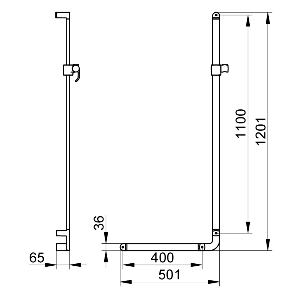 Subtle curvature embellishes the length of this stunning shower riser rail, which measures 501mm in width and 1201mm in height, contribute to the signature contours that lend this product and all others like it in the Elegance collection a timeless charm, befitting of any interior style. Curving perpendicularly at its base, the bar that comprises the riser rail seamlessly forms an integrated grab bar to provide you additional support when navigating your enclosure, or offering some purchase while sitting or standing from a shower seat.