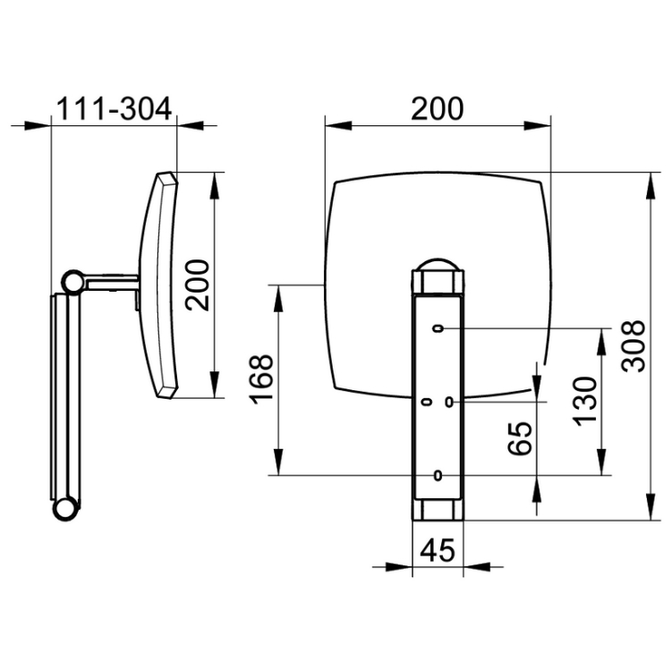 The mirror face is attached to a pivoting arm, which allows you to adjust the mirror in three dimensions and extends 304mm from its wall mount, which gives the iLook_Move Square Cosmetic Mirror its total height of 308mm. Simply placing your hand behind the mirror face allows you to turn the mirror left or right, angle it up and down as well as pull it forward and backwards until you settle on the perfect angle to suit your needs.