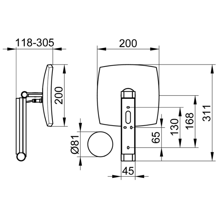 The mirror face is attached to a pivoting arm, which extends 305mm from its wall mount and allows you to move the mirror in three dimensions. Placing your hand behind the mirror face allows you to turn this cosmetic mirror left or right, angle it up or down as well as pull it forward or backwards until you find the best angle to suit your needs.