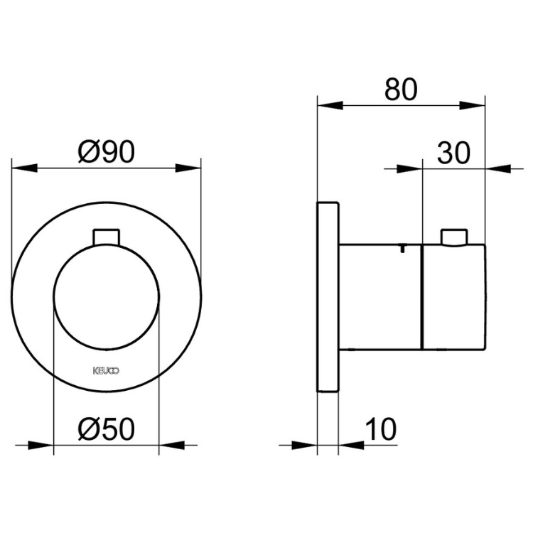 This thermostatic mixer valve, which measures 50mm in diameter and 80mm in depth, comprises of a cylindrical dial that extends from a circular backplate, its sculptural design emphasises by a similarly cylindrical button featured on the circumference of the dial.