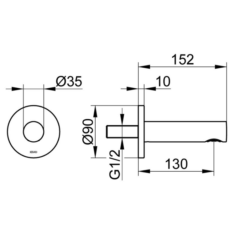 The cylindrical body of this sleek bath filler, which measures 90mm in diameter and extends 152mm from its round wall mounting, features a discreet aerator on the underside of its spout to achieve its clean and minimalist design.