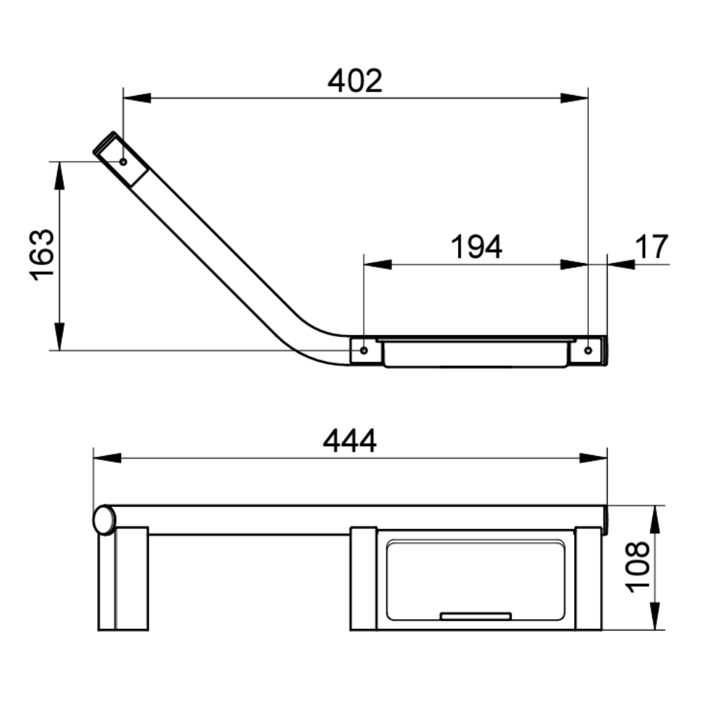 The cylindrical arm of this angled grab rail, which measures 444mm in width and 163mm in height, bends in its centre before curving upwards to form a diagonal stretch designed to give you optimal support as you change from a standing to a sitting position. Whether your are settling into your bathtub, rising from your shower chair or simply moving around you space, this diagonal bar in combination with the horizontal soap dish gives you more flexibility as you go about your morning routine.