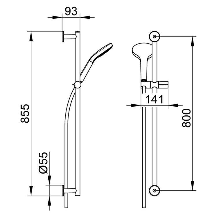 Measuring 855mm in height and projecting only 93mm from the wall, this slide rail set features a cylindrical handset holder to give you the flexibility to switch between handsfree or manual showering whenever you wish. Twisting the handle on the lefthand of the holder, which measures 141mm in width, allows you to adjust its height and direction to your pleasing, such that the Plan Blue Slide Rail Shower Set can easily accommodate its user, whatever their size.