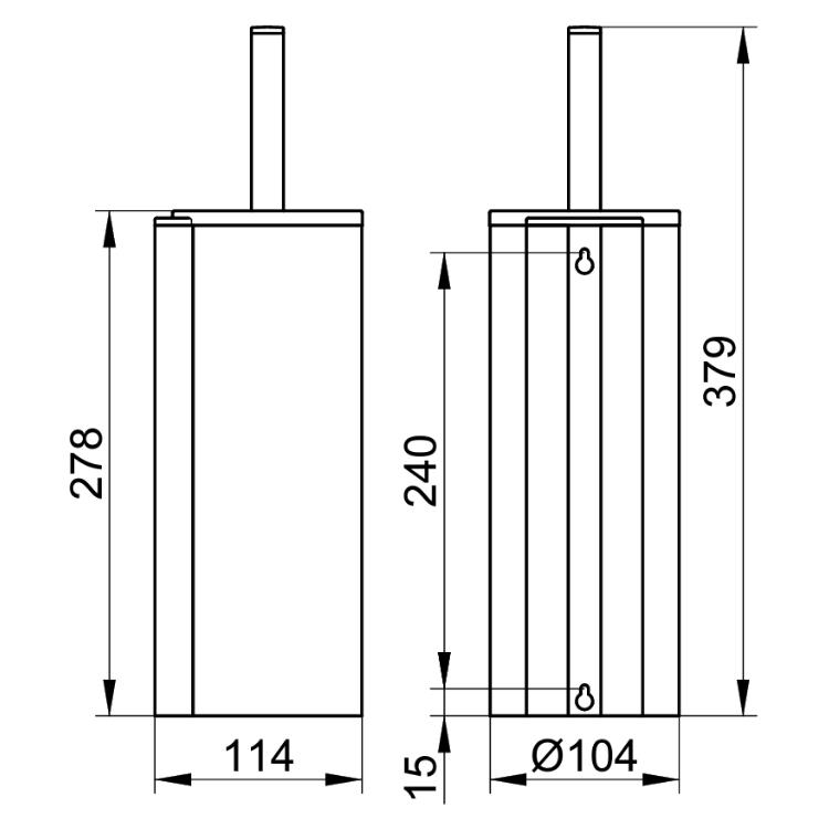 Measuring 278mm in height and 104mm in diameter, the cylindrical holder is chrome plated and mounted to the wall by concealed fixing points so as not to compromise its sleek appearance. Chrome plating similarly covers the handle of the toilet brush, which increases the total height of the toilet brush set to 379mm while ensuring the entire product has an exquisite gleam from top to bottom.