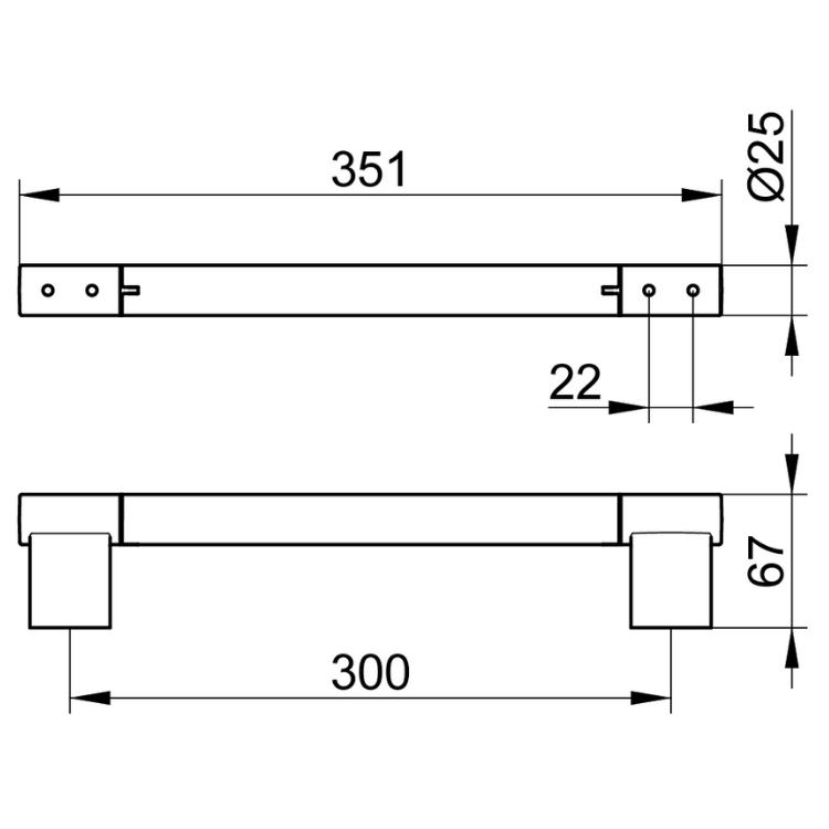 Rectangular wall mounts frame the cylindrical body of this striking grab bar, culminating in its contoured appearance which lends the product its timeless charm, suited to the comfortable surroundings of a domestic bathroom as much as the clean contemporary décor of a more corporate space. Measuring 350mm in width and projecting 67mm from the wall, the Plan Grab Bar is compact enough for even modestly sized bathrooms, while still providing enough space to double as a single towel rail.