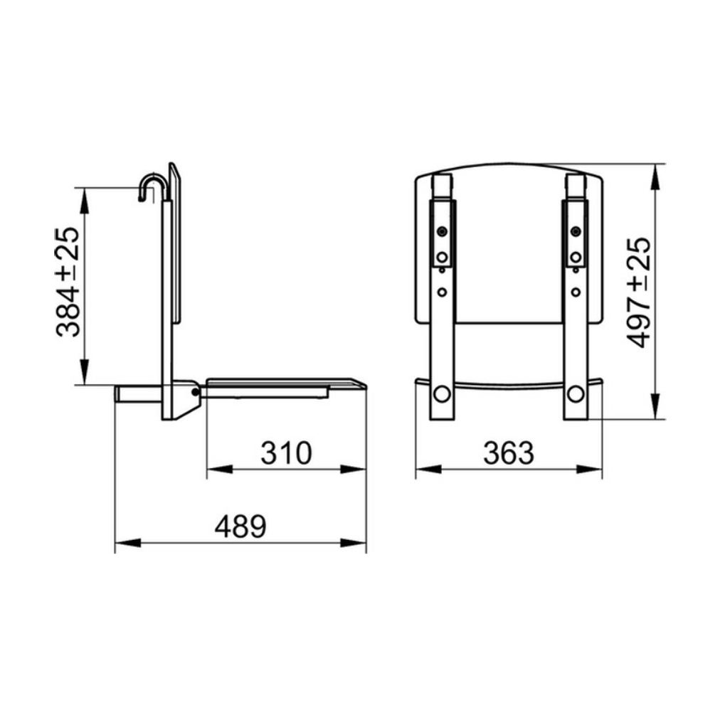 The seat itself, which measures 489mm in depth, is attached to its backrest via two hinges such that it can be folded away when not in use, reducing its projection to 159mm. When folded down, the seat is capable of supporting up to 110kg.