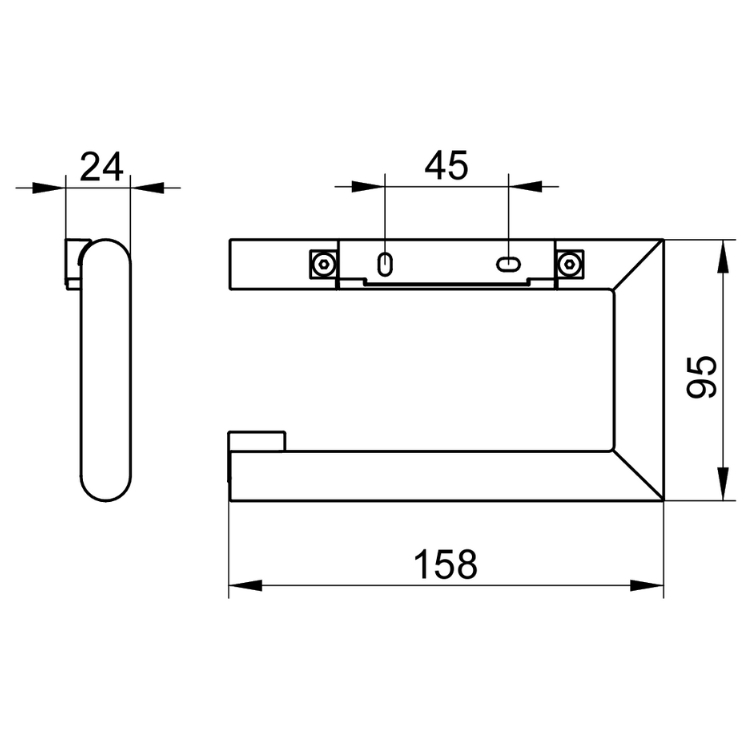 Three cylindrical bars form the rectangular outline of this open toilet roll holder, its smooth edges ensuring that the product is always comfortable to the touch. Measuring 158mm in width and 95mm in height, the Reva Toilet Roll Holder provides plenty of room to store a standard sized toilet roll of approximately 120mm in width.