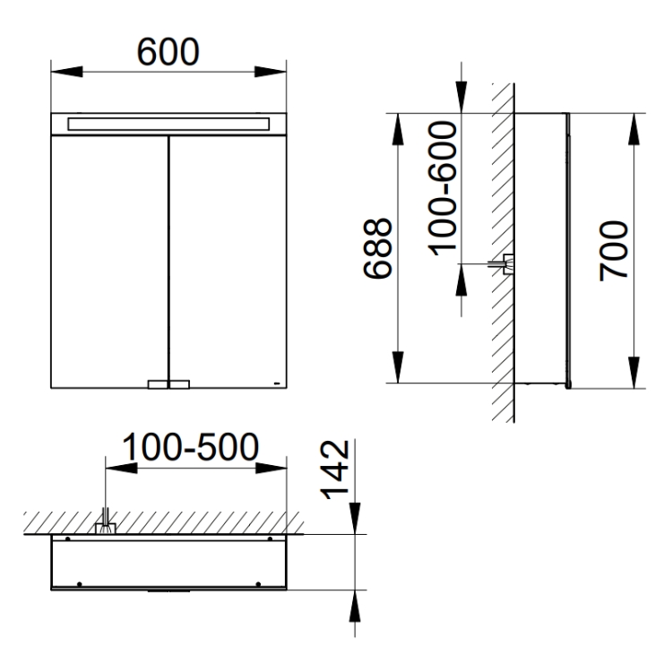 The double doors of this illuminated mirror cabinet, which measures 600mm in width and 700mm in height, have mirror faces on both sides to give you the flexibility of using it whether it is open or closed. Above the doors is a strip of LED lights that, when activated, provide some neutral white light, ideal for applying cosmetics or completing toiletry tasks.