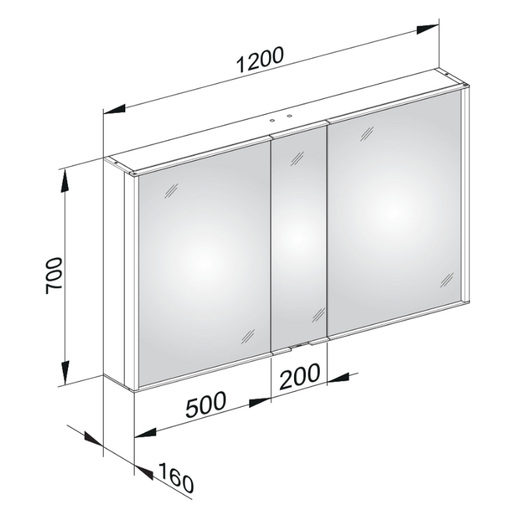 The double doors of this illuminated mirror cabinet, which measures 1200mm in width and 700mm in height, are mirrored on both sides such that you have the freedom to check you reflection whether the doors are open or closed. Along the edge of either side of the cabinet are its two strips of LEDs, which are controlled via the infrared sensor switch located between the silver handles at the bottom of the cabinet.