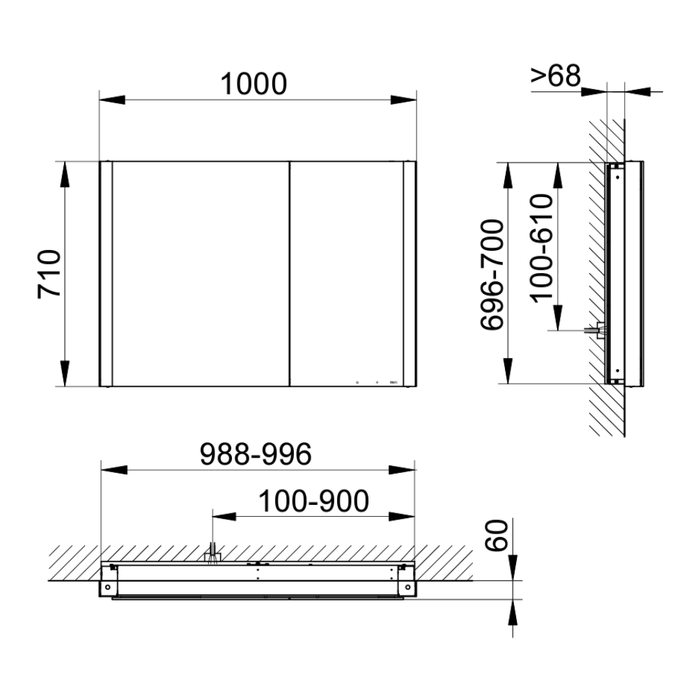 Measuring 1000mm in width and 710mm in height, the double doors of this illuminated mirror cabinet feature mirror surfaces on their inner as well as outer facing sides to ensure you always check your reflection, even when accessing the inside of the cabinet. Whereas the Somaris only projects 47mm from the wall, swinging back its soft close doors reveals its true 115mm of depth, in addition to its shaver socket and three adjustable glass shelves. These features give you complete freedom to organise your toiletries to best suit your needs, while ensuring your appliances never run out of charge.