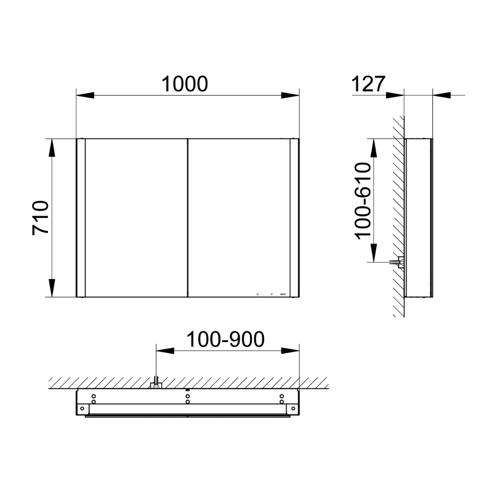 Measuring 1000mm in width and 710mm in height, the double doors of this illuminated mirror cabinet have inner as well as outer facing mirrored surfaces such that you can still check your reflection while accessing its internal contents. Running down either side of the cabinet are its two bold strips of LED lights, which are controlled by the circular touch sensor button found at the bottom of its right hand mirror door.