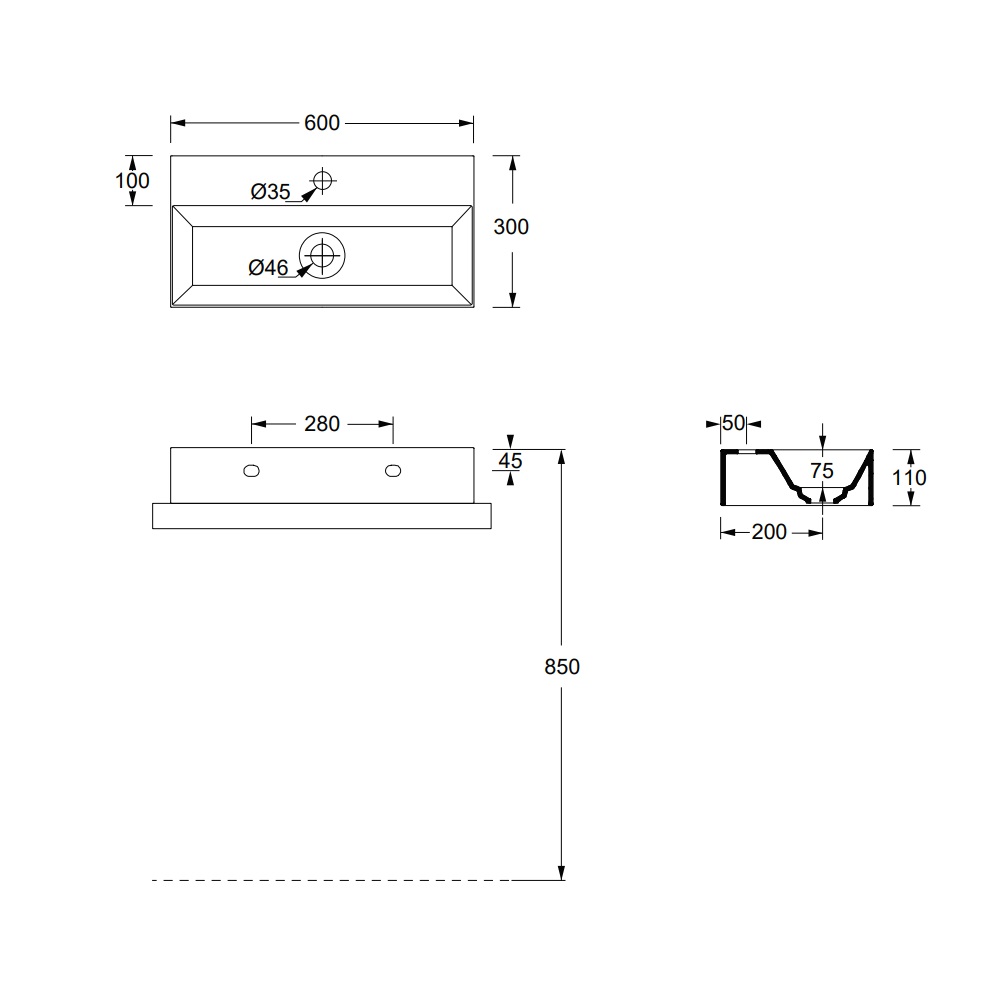 With a 600mm width, it makes this ideal for installing into a variety of sized bathroom spaces, offering a generous amount for handwashing and daily hygiene routines. It features a shelf-like design at the back of the wall hung basin ideal for keeping soaps and accessories close by if not using additional storage. The wall mounted design offers a floating look that opens out the floor space underneath for use, or simply just to create a look of a wider room. The interior is as smooth and does not a feature an overflow hole, perfect for those who look to avoid these from a style point of view.