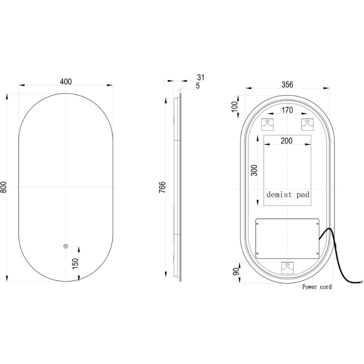 Measuring 400mm in width and 800mm in height, the smooth edges of this oval mirror are accentuated by its backlit colour changing LED lights, which are controlled via the touch sensor located towards the bottom of the mirror face. Tapping the sensor will bring the lights to life, while simultaneously triggering the heated demister pad built into the mirror face such that it never become clouded by steam from your shower or hot water taps.