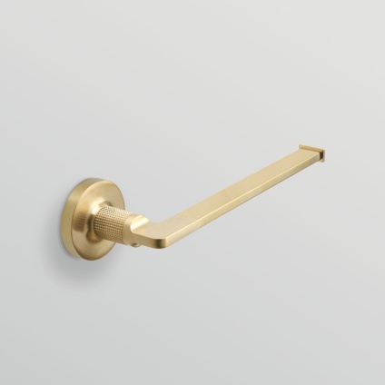 Hang a towel or a bathrobe as you enjoy your morning shower on this stylish piece, which is coated magnificently with a shiny brushed brass finish, complemented by classic square knurled details on the base. It has a rounded wall mounting, extending outwards with the decorative knurled touch before curving upwards in a squared hook design. Measuring just 60mm across and with a projection of 68mm, it is ideal for smaller bathroom spaces too.