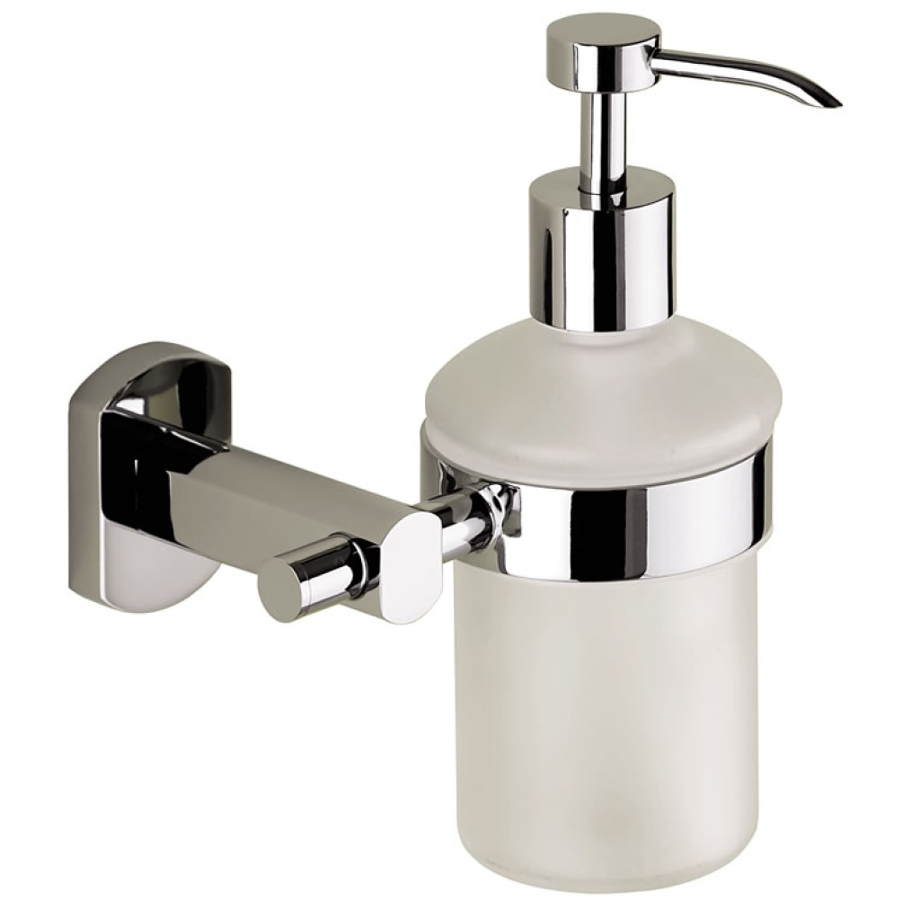 Forged from a mix of high-grade stainless steel and Cromall, this soap dispenser is topped off with a shiny chrome finish for that extra bit of sheen. It features a frosted glass dispenser positioned at a striking angle, as well as concealed fixings for invisible wall mounting.