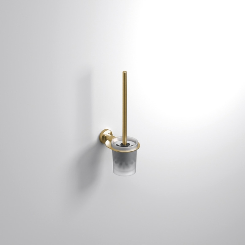 Measuring 103mm in width and 378mm in height, the cylindrical handle and round wall mount of this toilet brush set are plated in brilliant brushed brass, which would lend some opulence to your contemporary interior while pairing beautifully with traditional furnishings or fixtures featuring the same finish. The frosted glass holder slots into the bracket, tempering the opulent design of the product, which can be removed and cleaned whenever necessary.