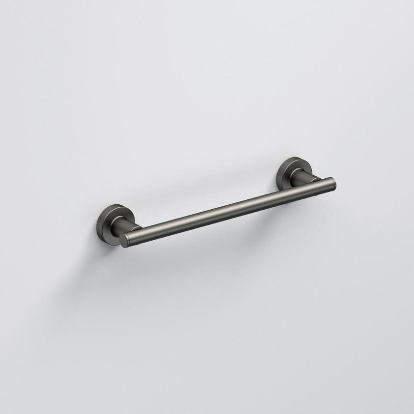 The Tecno Project Gunmetal 330mm Towel Rail is a wall-mounted single towel rail that represents a sophisticated bathroom enhancement from Origins Living.