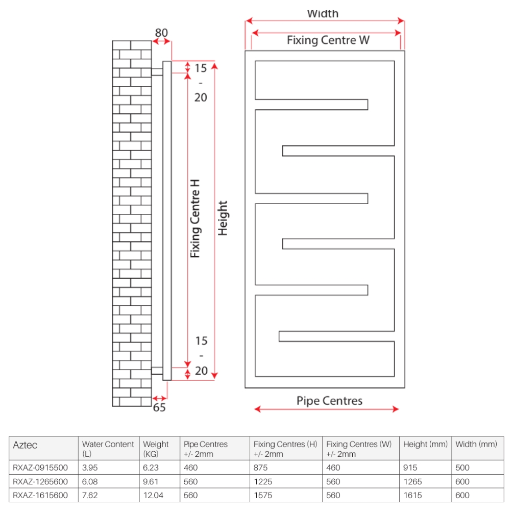 - Please Note: Allow a minimum of 100mm for valves; summer element will affect pipe centres; flow and return can be reversed.