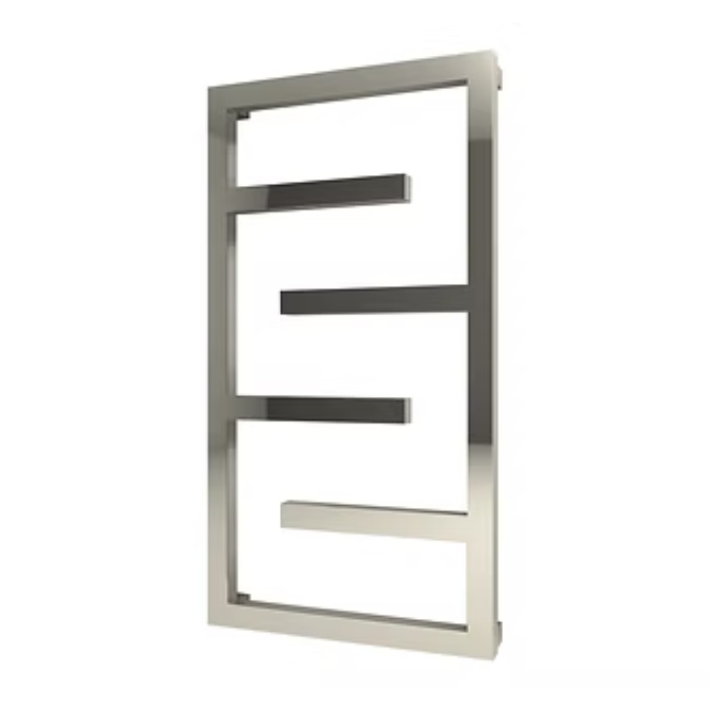 Standing at a height of 915mm and a width of 500mm, this elegantly designed heated towel rail is expertly crafted to fit seamlessly on bathroom walls. With four uniquely shaped square bars, it optimally warms towels, ensuring they heat quickly and evenly while providing ample space for placement. Showcasing its designer radiator aesthetic, this piece positions the bars two-thirds of the way across the pipe centres. Meanwhile, the highly contemporary stainless steel finish adds a touch of elegance, beautifully tying the piece together with your bathroom decor.