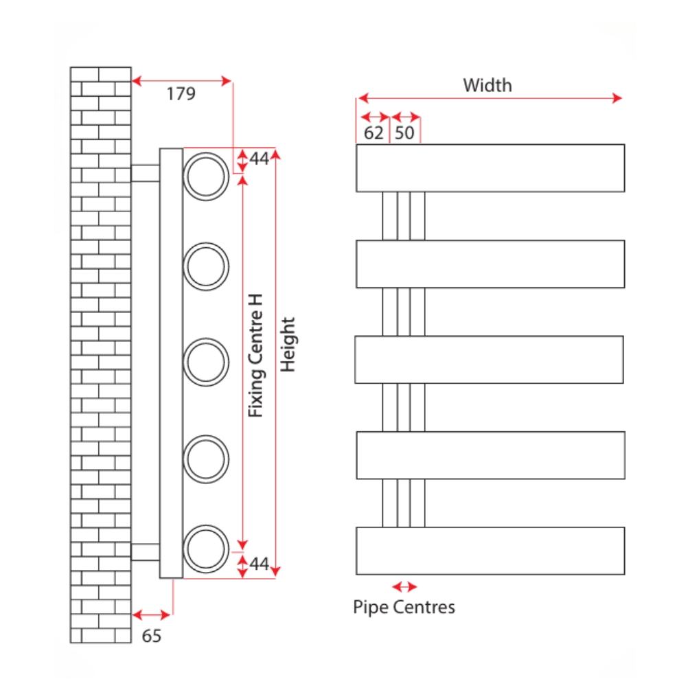 - Please Note: Allow a minimum of 100mm for valves; summer element will affect pipe centres; flow and return can be reversed.